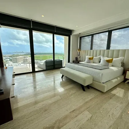 Located nearly a 5-minute walk from Barezzito Puerto Cancun, 3Br Luxury Oceanfront Apt W/ Pool, Gym & Views! Villa offers a patio with a view over the sea.